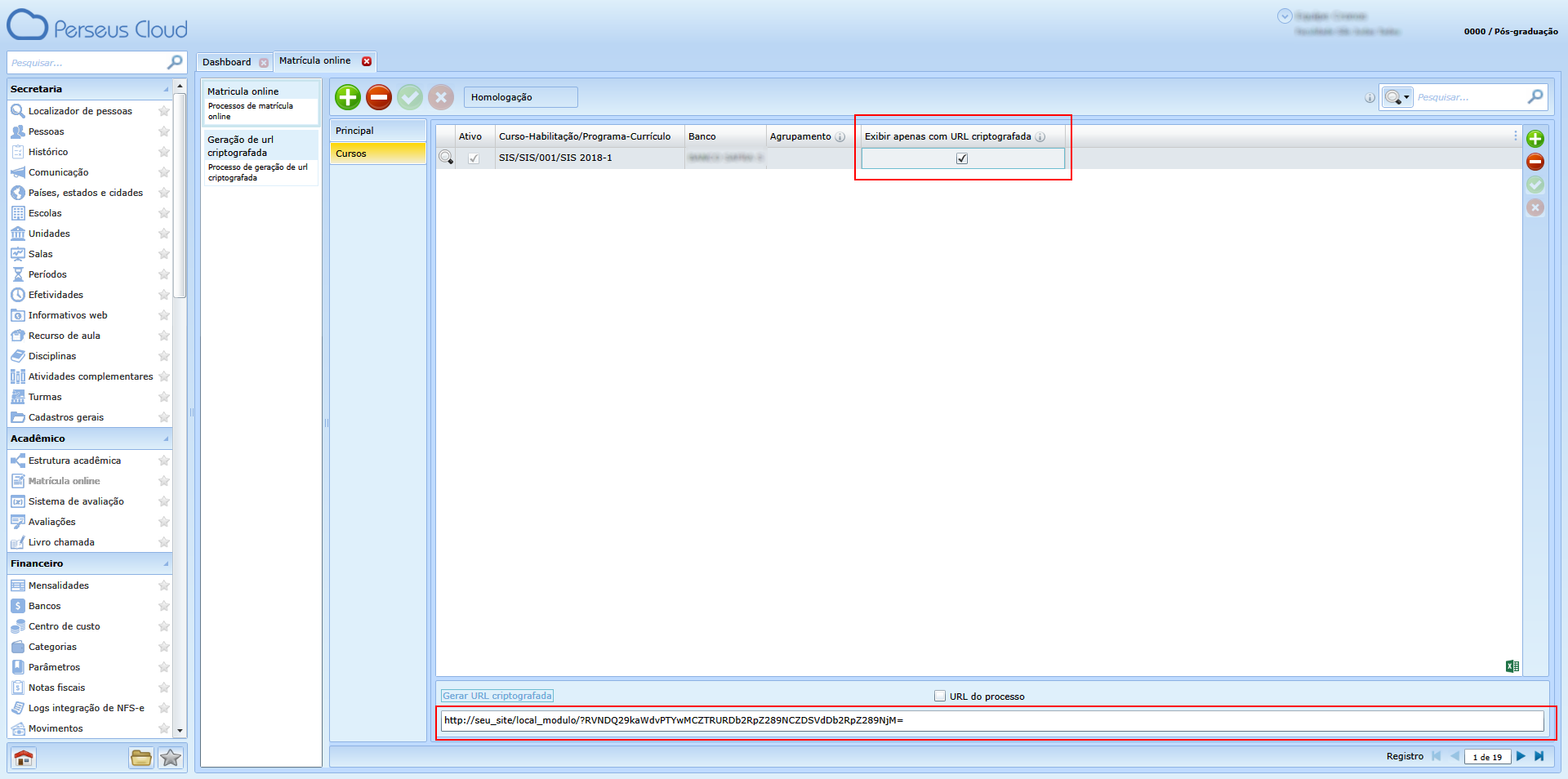 Agora podemos definir se um curso será exibido somente se for acessado através de uma URL criptografada, gerada dentro do Perseus Cloud. Caso esta configuração não esteja explícita em outros cursos, eles serão exibidos tanto por uma URL criptografada como pelo acesso normal ao inscrição: